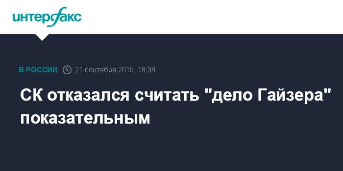 Москва. 21 сентября. INTERFAX.RU - "Дело Гайзера" является результатом планомерной работы, а не "местью одной группировки другой", заявил официальный представитель СК РФ Владимир Маркин.