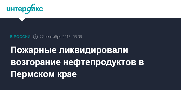 Москва. 22 сентября. INTERFAX.RU - Возгорание нефтепродуктов, которое произошло в ночь на вторник в садоводческом некоммерческом товариществе (СНТ) "Моряк" в Пермском крае, удалось потушить, сообщает пресс-служба ГУ МЧС России по региону.