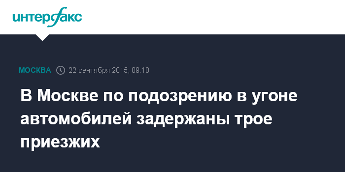 Москва. 22 сентября. INTERFAX.RU - Столичные полицейские задержали трех подозреваемых в угоне автомобилей, сообщил "Интерфаксу" начальник пресс-службы ГУ МВД РФ по Москве Андрей Галиакберов.