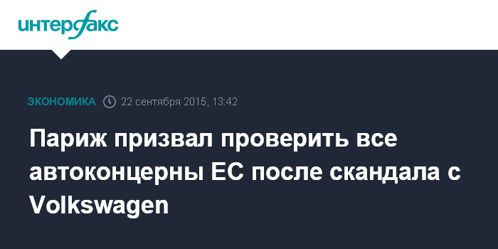Москва. 22 сентября. INTERFAX.RU – Министр финансов Франции Мишель Сапен призвал , после скандала с Volkswagen в США провести общеевропейское расследование всех автомобилестроительных концернов, работающих в регионе, включая французские.