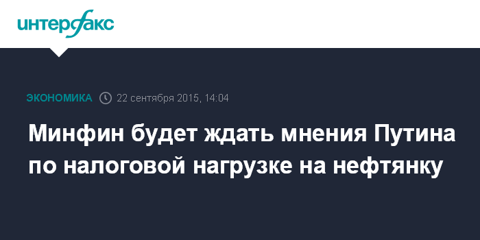 Москва. 22 сентября. INTERFAX.RU – Минфин ожидает, что президент Владимир Путин на совещании по бюджетным проектировкам во вторник выскажет свою позицию по предложениям ведомства относительно налоговой нагрузки на нефтяную отрасль.