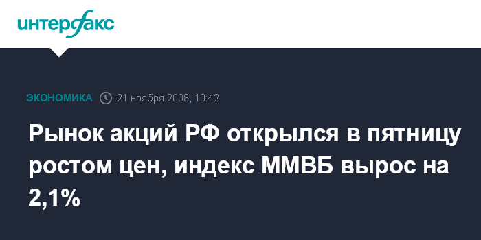 Рынок акций РФ открылся в пятницу ростом цен, индекс ММВБ вырос на 2,1%
