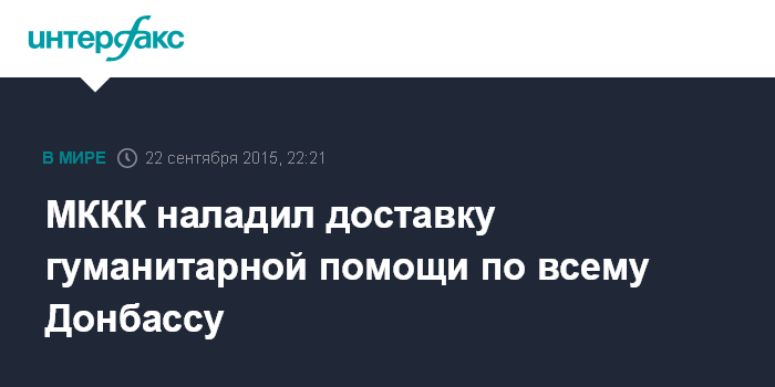 Москва. 22 сентября. INTERFAX.RU - Спецпредставитель ОБСЕ в Контактной группе по Украине Мартин Сайдик сообщил, что Международному комитету Красного Креста во вторник удалось наладить доставку гуманитарной помощи по обе стороны линии разграничения в Донбассе.