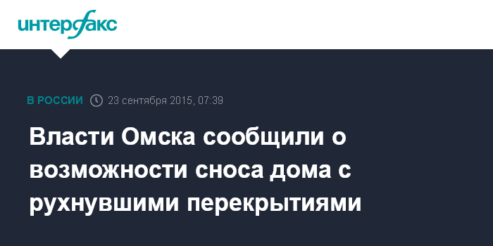 Москва. 23 сентября. INTERFAX.RU - Власти Омска в течение двух дней обследуют дом, в котором накануне рухнули перекрытия, и примут решение по его судьбе, сообщает администрации города в среду.