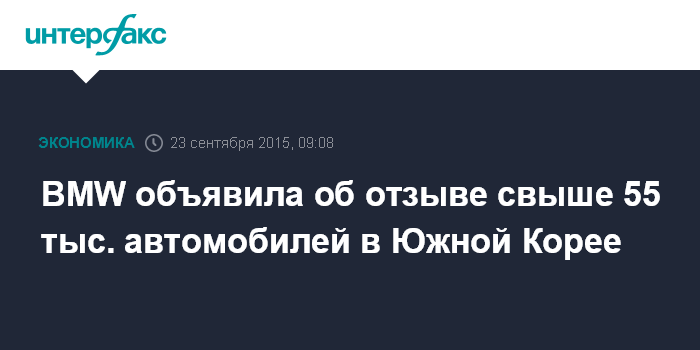 Москва. 23 сентября. INTERFAX.RU – Компания BMW Korea, южнокорейский импортер автомобилей германской BMW AG, отзывает 55,737 тыс. машин, сообщается в заявлении министерства земель, инфраструктуры и транспорта страны.