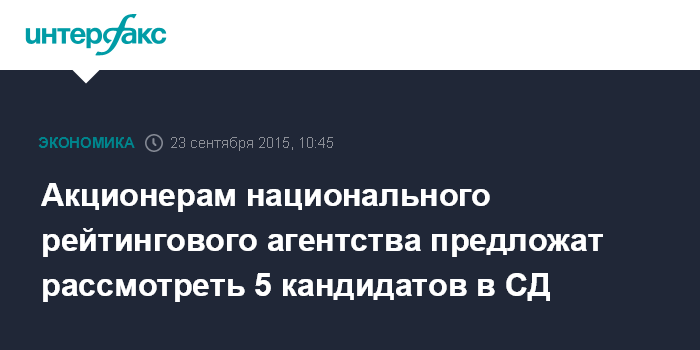 Акционерам национального рейтингового агентства предложат рассмотреть 5 кандидатов в СД
