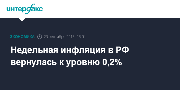 Москва. 23 сентября. INTERFAX.RU - Инфляция в РФ за неделю с 15 по 21 сентября составила 0,2%, сообщил в среду Росстат.
