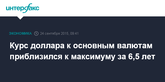 Москва. 24 сентября. INTERFAX.RU - Курс доллара США относительно основных мировых валют находится около максимума за 6,5 лет в ожидании выступления главы Федеральной резервной системы Джанет Йеллен в четверг (поздно вечером по московскому времени).