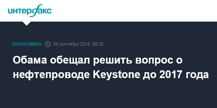 Москва. 24 сентября. INTERFAX.RU - Белый дом объявил, что президент США Барак Обама решит вопрос о нефтепроводе Keystone XL до своего ухода с поста президента в январе 2017 года.