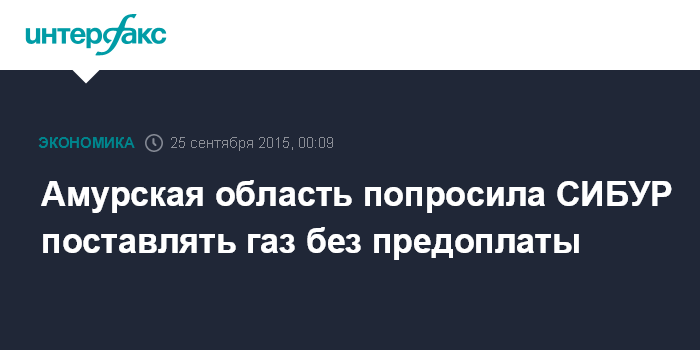 Москва. 25 сентября. INTERFAX.RU - Власти Амурской области в очередной раз вынуждены обратиться к руководству "СИБУРа" с просьбой о поставках газа без предоплаты из-за дефицита "голубого топлива" на предприятии ОАО "Амургаз".