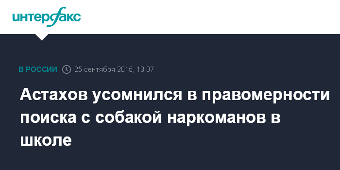 Москва. 25 сентября. INTERFAX.RU - Уполномоченный при президенте РФ по правам ребенка Павел Астахов попросил главу ФСКН Виктора Иванова проверить правомерность действий наркополицейских в школе Санкт-Петербурга, где со служебной собакой искали среди учеников потребителей наркотиков.