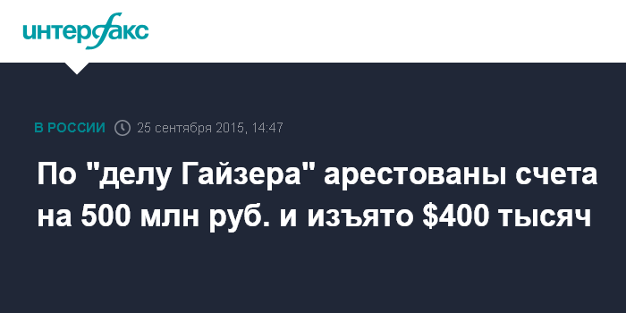 По "делу Гайзера" арестованы счета на 500 млн руб. и изъято $400 тысяч