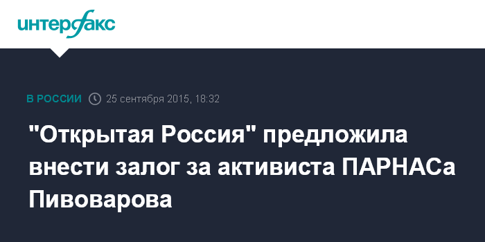 "Открытая Россия" предложила внести залог за активиста ПАРНАСа Пивоварова