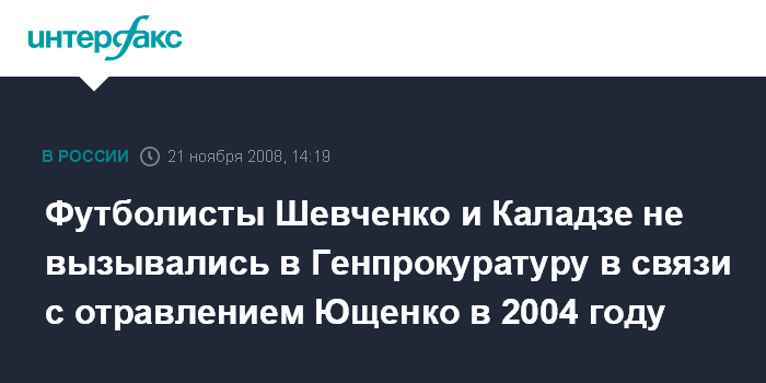 Москва. 21 ноября. INTERFAX.RU - Игроки итальянского футбольного клуба "Милан" Андрей Шевченко и Каха Каладзе опровергли сообщение о том, что они должны в Генеральной прокуратуре дать показания по делу об отравлении президента Украины Виктора Ющенко в 2004 году.