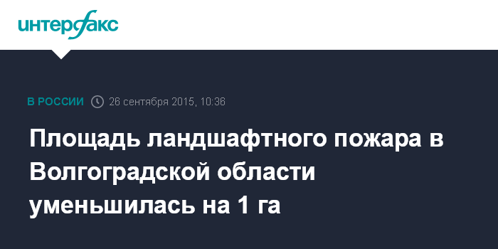 Москва. 26 сентября. INTERFAX.RU - Общая площадь ландшафтного пожара в Серафимовичском районе Волгоградской области составляет около 5 га, сократившись за ночь на 1 га, сообщает пресс-служба ГУ МЧС по региону в субботу.