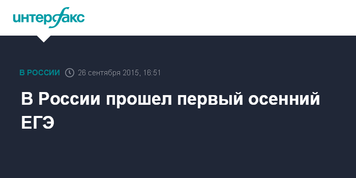 Москва. 26 сентября. INTERFAX.RU - Первый осенний Единый государственный экзамен по математике прошел в субботу без сбоев и утечек, сообщает пресс-служба Рособрнадзора.