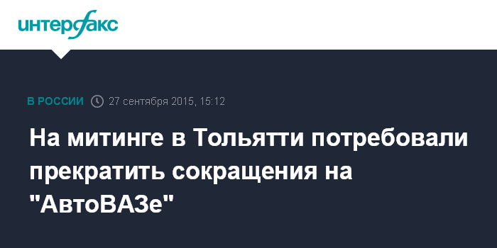 Москва. 27 сентября. INTERFAX.RU - Независимый профсоюз работников ОАО "АвтоВАЗ" в воскресенье провёл митинг против сокращений сотрудников и за повышение зарплат.