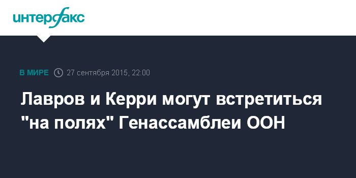 Москва. 27 сентября. INTERFAX.RU - Глава МИД РФ Сергей Лавров и Госсекретарь США Джон Керри встретятся "на полях" ООН, если это будет необходимо, но точная дата встречи пока неизвестна.