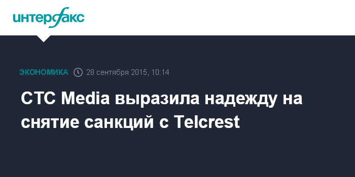 Москва. 28 сентября. INTERFAX.RU – Изменения в составе акционеров Telcrest, владеющей 25% акций СТС Media, могут способствовать снятию с нее санкций, которые США ввели в отношении Telcrest в прошлом году из-за того, что компания находилась под контролем структур Юрия Ковальчука.