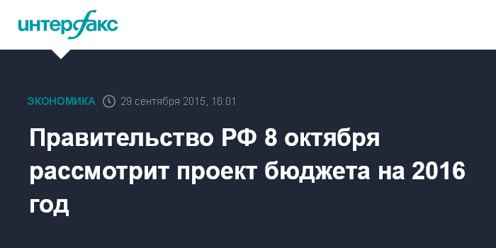 Правительство РФ 8 октября рассмотрит проект бюджета на 2016 год