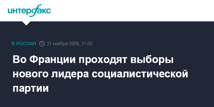 Москва. 21 ноября. INTERFAX.RU - Члены оппозиционной Французской социалистической партии проводят в пятницу вечером второй тур голосования, в результате которого определится, кто станет их новым лидером. На пост первого секретаря партии претендуют бывший кандидат в президенты страны Сеголен Руаяль и мэр города Лилля Мартин Обри.