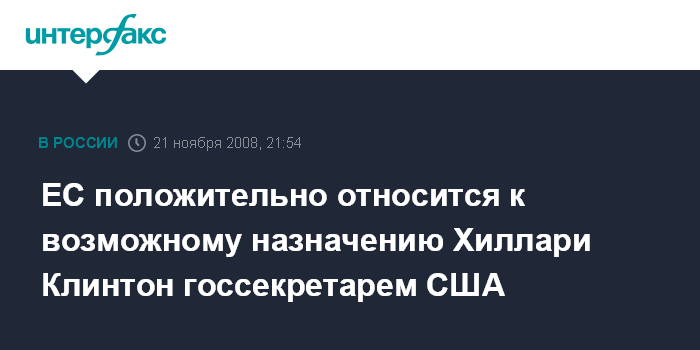 ЕС положительно относится к возможному назначению Хиллари Клинтон госсекретарем США