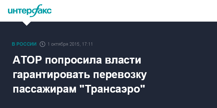 "Внезапная приостановка полетов перевозчика в течение октября может привести к беспрецедентно тяжелым последствиям для авиационного и туристического рынков. Ассоциация туроператоров обращается ко всем ответственным ведомствам с просьбой всесторонне рассмотреть варианты предоставления гарантий всем пассажирам, чтобы в случае негативного сценария развития событий с "Трансаэро" им была бы предоставлена перевозка на бортах других авиакомпаний", - говорится в письме.
