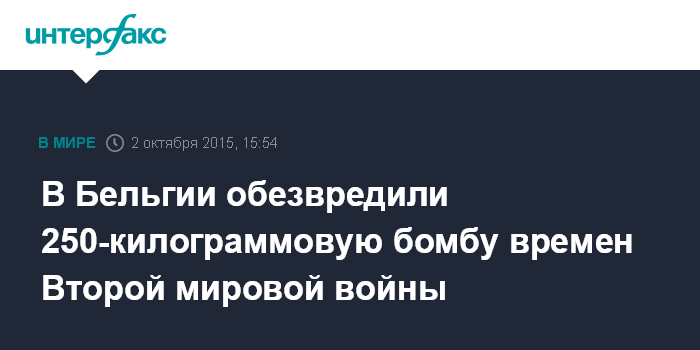 Москва. 2 октября. INTERFAX.RU - Армейские саперы обезвредили в пятницу в пригороде Шарлеруа в Бельгии неразорвавшуюся 250-килограммовую авиационную бомбу времен Второй мировой войны, сообщили бельгийские СМИ.
