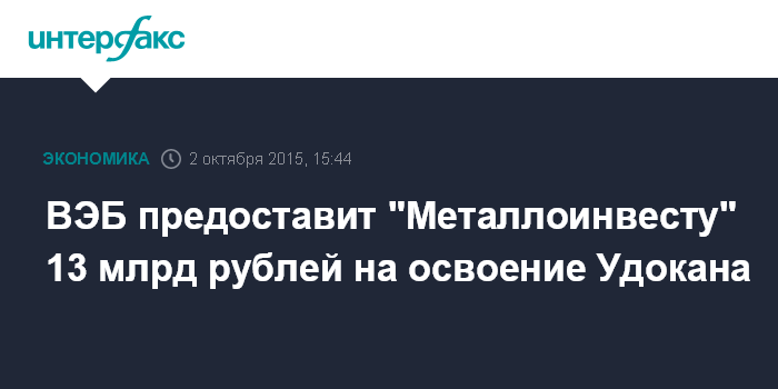 ВЭБ предоставит "Металлоинвесту" 13 млрд рублей на освоение Удокана