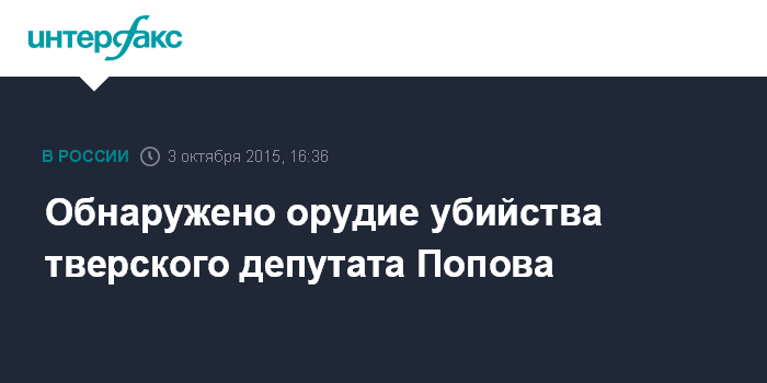 Москва. 3 октября. INTERFAX.RU - Сотрудниками ГУУР МВД России сегодня были обнаружены сумка и часть обреза из которого застрелили депутата Заксобрания Тверской области Николая Попова, сообщается на сайте МВД РФ.