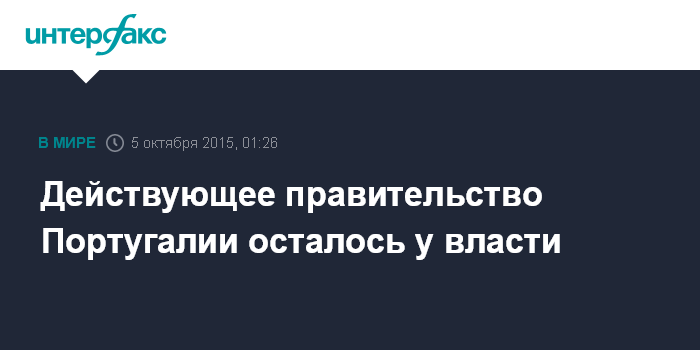 Москва. 5 октября. INTERFAX.RU - Правительству Португалии удалось переизбраться на новый срок, несмотря на серьезное сокращение бюджетных расходов, сообщило в понедельник агентство Associated Press.