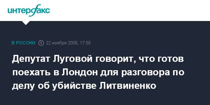 Москва. 22 ноября. INTERFAX.RU - Депутат Госдумы РФ от фракции ЛДПР Андрей Луговой заявил, что считает возможным отправиться в Великобританию с тем, чтобы побудить британское правительство "заниматься расследованием" убийства бывшего офицера ФСБ Александра Литвиненко.
