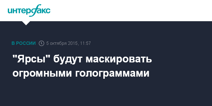 "Огромные голографические изображения, по своим габаритам идентичные пусковым установкам "Ярс", можно получить с помощью лазерных устройств. Наряду с этим, голограммы изобретатели РВСН предлагают применять и для прикрытия объектов. Получаемые голографические изображения могут маскировать объекты под фон окружающей местности или под объекты другого предназначения", - сказали в пресс-службе Минобороны.
