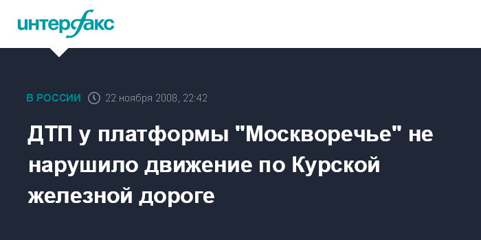 ДТП у платформы "Москворечье" не нарушило движение по Курской железной дороге