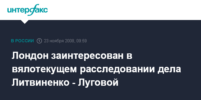 "В целом процесс расследования этого дела с британской стороны можно назвать вялотекущим. Мы рассчитывали, что за год что-то изменится, но ситуация с мертвой точки не сдвинулась", - заявил А.Луговой "Интерфаксу", комментируя ход расследования дела А.Литвиненко, который скончался в Лондоне ровно два года назад.
