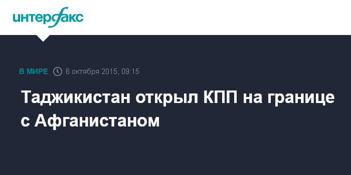 Москва. 6 октября. INTERFAX.RU - На таджикско-афганской границе возобновили работу все три контрольно-пропускных пункта (КПП), которые были закрыты 28 сентября после нападения талибов на Кундуз, сообщил журналистам во вторник пресс-секретарь Главного погрануправления (ГПУ) Госкомитета нацбезопасности (ГКНБ) Таджикистана Мухаммад Улугходжаев.