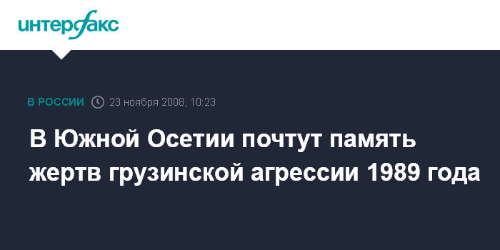 "19 лет назад, 23 ноября 1989 года, против грузинской армады встали безоружные молодые защитники Отечества, нашей республики. Этот день вошел в историю республики как начало героической летописи борьбы за независимость Южной Осетии", - сообщила "Интерфаксу" государственный советник президента Южной Осетии Жанна Зассеева.
