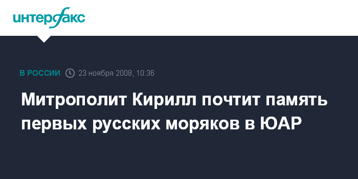 Митрополит Кирилл почтит память первых русских моряков в ЮАР