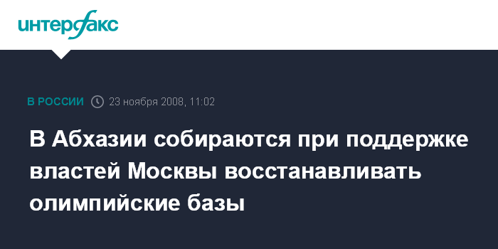 Сухуми. 23 ноября. INTERFAX.RU - Правительство Москвы намерено оказать Абхазии помощь в восстановлении бывшей советской олимпийской базы в селе Эшера и других спортивных объектов.
