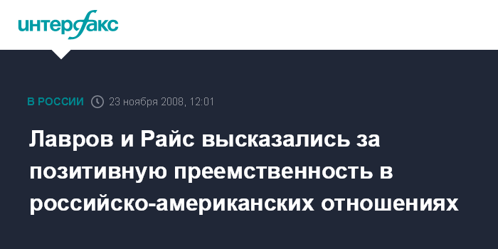 Лавров и Райс высказались за позитивную преемственность в российско-американских отношениях