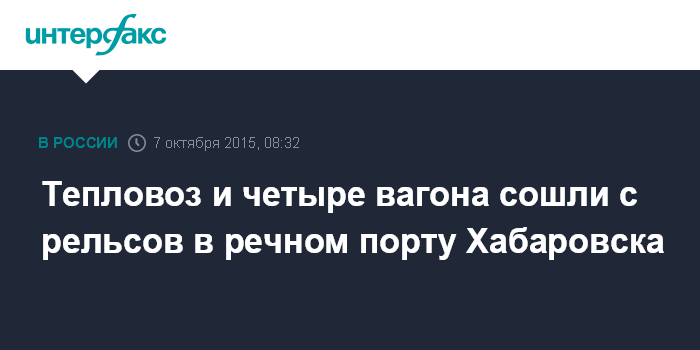 "По данным следствия, 7 октября около 02:00 на подъездных путях необщего пользования, расположенных на территории ОАО "Хабаровский речной торговый порт", при производстве маневровых работ произошел сход четырех вагонов грузового поезда и маневрового тепловоза. Никто не пострадал", - говорится в сообщении.