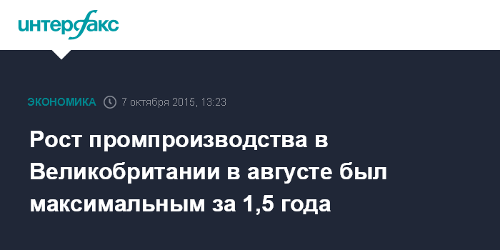 Москва. 7 октября. INTERFAX.RU –Объем промышленного производства в Великобритании в августе увеличился на 1% по сравнению с предыдущим месяцем, что стало самым существенным подъемом за последние 1,5 года, свидетельствуют данные Национального статистического управления (ONS) страны.