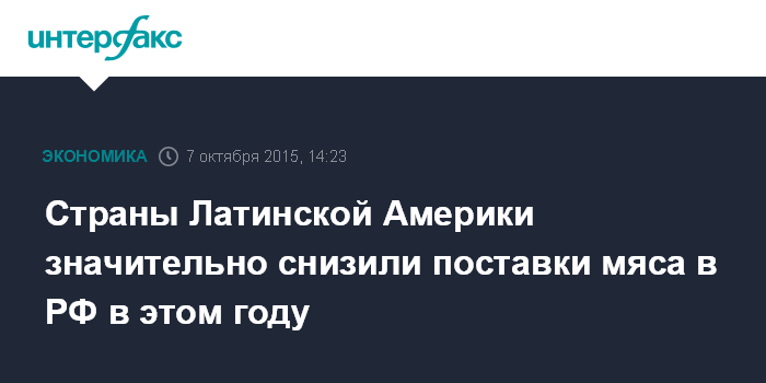 Москва. 7 октября. INTERFAX.RU - Страны Латинской Америки, традиционно экспортировавшие в РФ значительные объемы мяса, в этом году существенно снизили поставки, сообщает Россельхознадзор по итогам встречи главы службы Сергея Данкверта с президентом Национального института мяса Уругвая Федерико Станамом в среду в Москве.