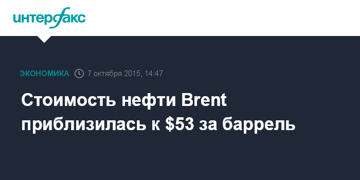Стоимость нефти Brent приблизилась к $53 за баррель