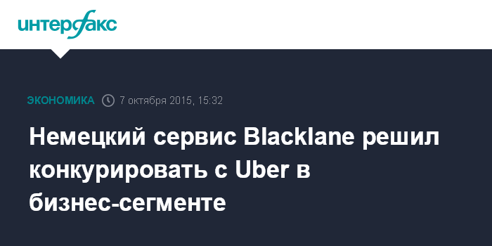 Москва. 7 октября. INTERFAX.RU – Берлинский сервис Blacklane GmbH, специализирующийся на оказании водительских услуг клиентам через приложение для смартфонов и через интернет, ведет переговоры о привлечении финансирования, чтобы составить конкуренцию таким компаниям, как Uber, в сегменте бизнес-поездок, сообщает агентство Bloomberg.