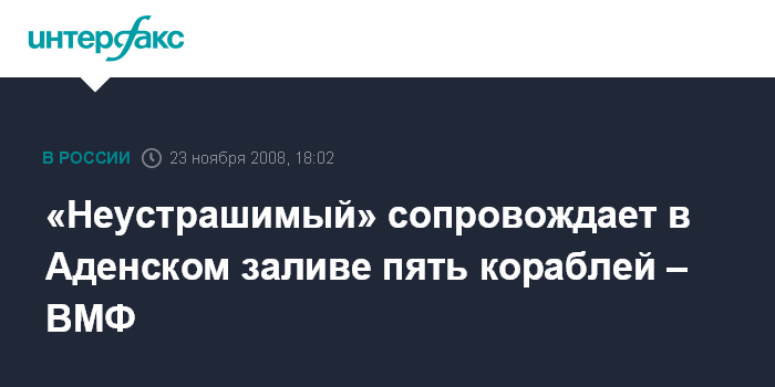 Москва. 23 ноября. INTERFAX.RU - По оценке Главного командования ВМФ России, сторожевой корабль "Неустрашимый" выполняет задачи в районе Африканского Рога на достаточно высоком профессиональном уровне.