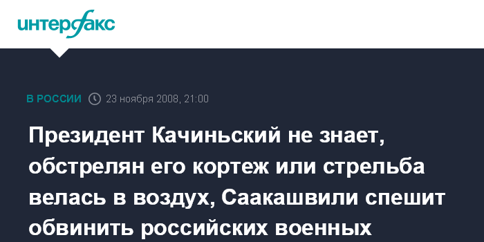 Президент Качиньский не знает, обстрелян его кортеж или стрельба велась в воздух, Саакашвили спешит обвинить российских военных