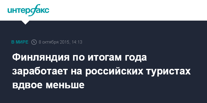 Москва. 8 октября. INTERFAX.RU - Российские туристы по итогам 2015 года потратят вдвое меньше в Финляндии, чем годом ранее, сообщает финская телерадиокомпания Yle.