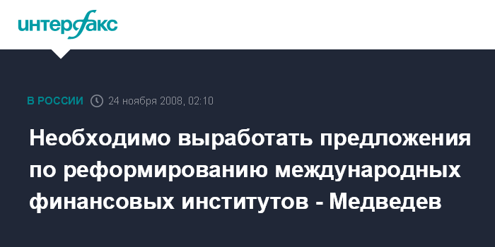 Необходимо выработать предложения по реформированию международных финансовых институтов - Медведев