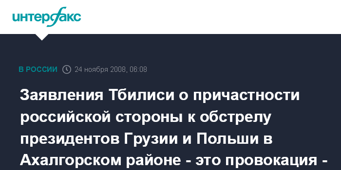 Лима. 24 ноября. ИНТЕРФАКС - Глава МИД РФ Сергей Лавров назвал провокацией заявления Тбилиси о причастности российской стороны к обстрелу кортежей президентов Грузии и Польши в Ахалгорском районе на границе с Южной Осетией. "Это провокация, самая настоящая. Не в первый раз уже подобные вещи случаются: сами все организуют, а потом обвиняют российскую или осетинскую стороны", - заявил С.Лавров журналистам в Лиме в понедельник.